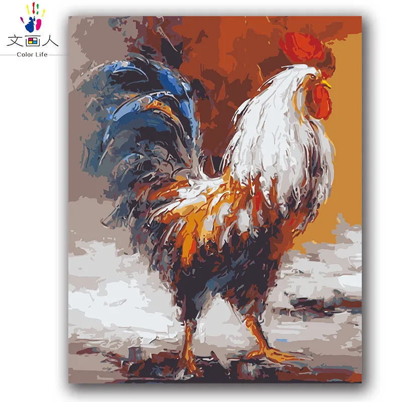Kleurplaten door het aantal dieren kip schilderij van nummers met kleuren  voor volwassenen kids leren schilderen op doek ingelijst